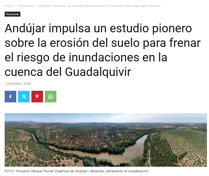 Andújar impulsa un estudio pionero sobre la erosión del suelo para frenar el riesgo de inundaciones en la cuenca del Guadalquivir. HORA JAÉN https://www.horajaen.com/2025/10/23/andujar-impulsa-un-estudio-pionero-sobre-la-erosion-del-suelo-para-frenar-el-riesgo-de-inundaciones-en-la-cuenca-del-guadalquivir/