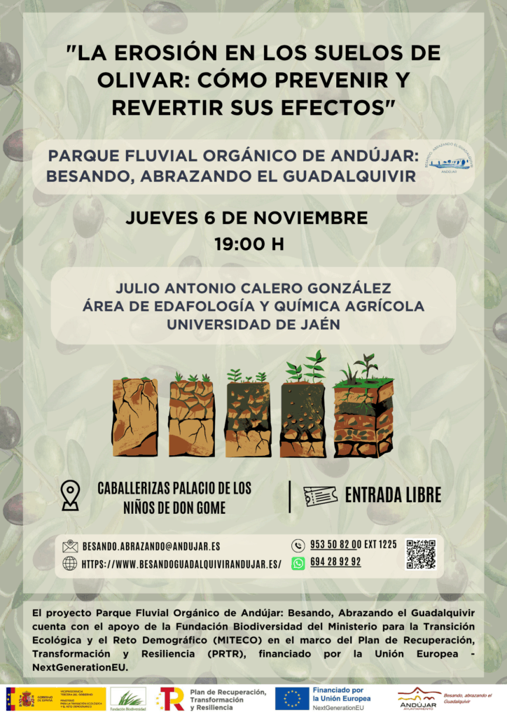 Desde el El proyecto Parque Fluvial Orgánico de Andújar: Besando, Abrazando el Guadalquivir en colaboración con la Universidad de Jaén hemos realizado un estudio sobre la erosión en la cuenca del Guadalquivir y su relación con las inundaciones.